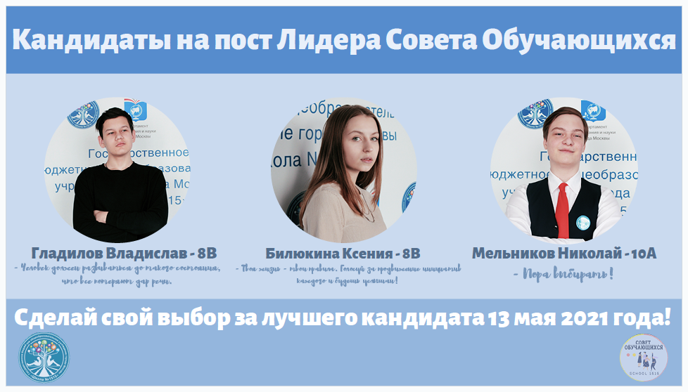 Согласно Календаря событий Деловой игры «Выборы Лидера Совета обучающихся» с 21 апреля 2021 года начата агитация избирателей зарегистрированными кандидатами в Лидеры Совета обучающихся, принявшими решение по участию в избирательной кампании. Осознавая значимость проводимой Деловой игры, ее значения для всего ученического и педагогического коллектива, кандидаты продумали основные тезисы своей предвыборной программы, основанной на инициативах избирателей. Подготовлен информационный материал и листовки. Весь наглядный материал размещен на информационных стендах школы, мониторах в рекреациях, в социальных сетях.