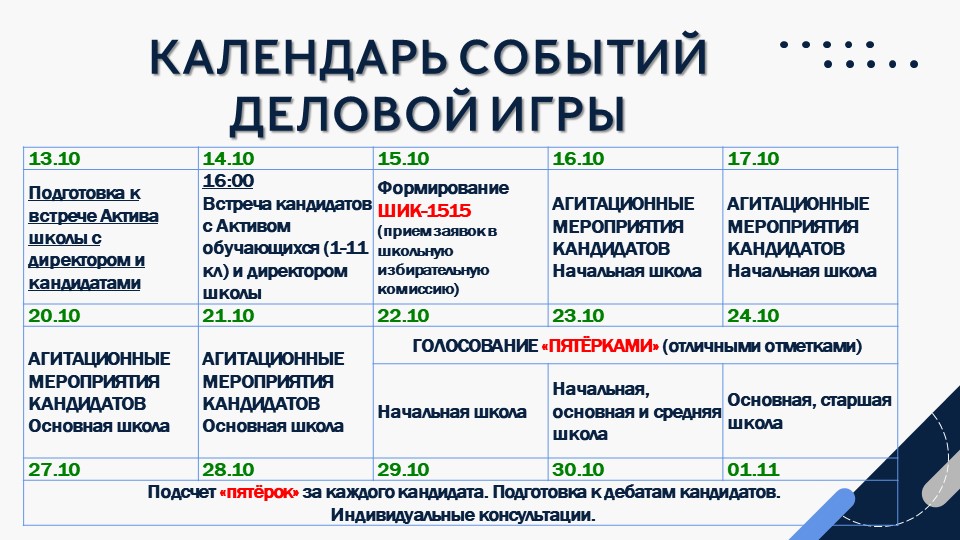 14 октября дан старт деловой игре "Выборы лидера Совета обучающихся". Приглашаем всех принять активное участие в жизни школы.