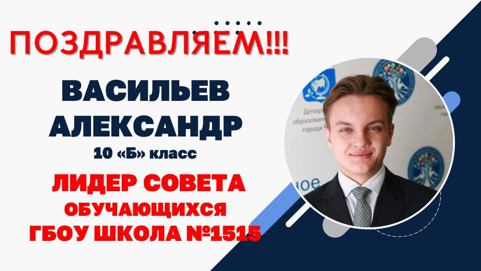 Большинством голосов избранным Лидером Совета обучающихся ГБОУ Школа №1515 стал Александр Васильев, ученик 10Б класса.